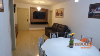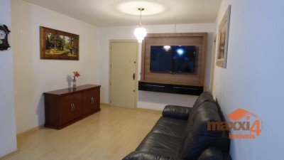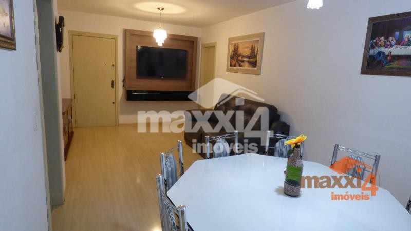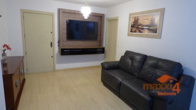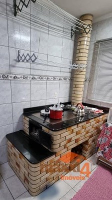 Descrição › Apartamento de 02 dormitórios sendo um suíte, 02 banheiros (um social e o outro da suíte), sacada, churrasqueira, espera para lareira e cozinha com fogão campeiro. Piso cerâmico e laminado. Box com capacidade para carro e moto. Contadores individuais. Próximo a Igreja de São Roque com facilidade de acesso servido por transporte urbano, mercado, faculdade e academia.