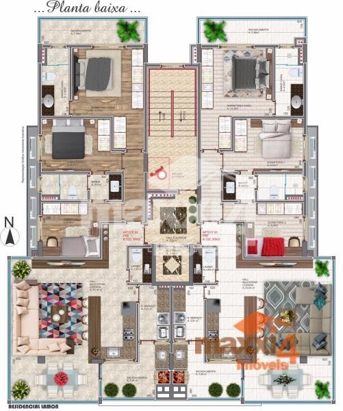 Descrição › Apartamento de 03 dormitórios, sendo 01 suíte do casal e para os outros 02 dorm, suíte americana ( banheiro comum a 2 dorm) cozinha sala de jantar e estar integradas. Box duplo de garagem com 33m² privativo. Prédio com dois apartamentos por andar, sendo que cada um tem três dormitórios tipo suíte com piso laminado, nas áreas sociais como piso porcelanato 90x90, espera para lareira e dutos para os quartos , 02 sacadas abertas, área de serviço independente, churrasqueira com espera para bifeira, espera para Split e agua quente, rebaixe em gesso e massa corrida em todos os ambientes vidros 6 mm laminados, aproveitamento de água de chuva, fachada com detalhes em mármore e plaquetas de cerâmica, salão de festa, brinquedoteca, espaço fitness, próximo a mercados, bancos, escola. À 2 min do centro.