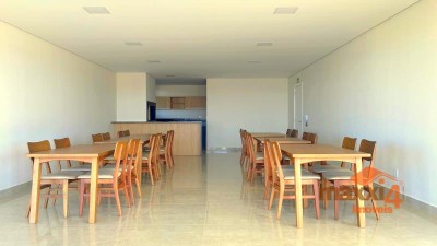 Descrição › Apartamento de 199,30m² privativos, com 03 suítes composto de sala de estar jantar com 56 m2, com lareira e churrasqueira e lavabo, cozinha, área de serviço com 13,70 m2, com janela externa, suíte máster com 37,00 m2 , mais duas suítes com 14,45 m2 e 16,18 m2, em um prédio totalmente residencial com 25 apartamentos sendo dois por andar, guarita, salão de festas, área fitness, playground, terraço e piscina com borda infinita. Proximo a mercado, escolas, creches, farmacias, comercio central a 2 min.