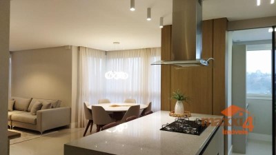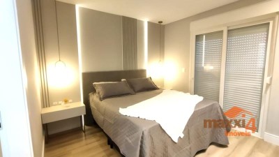 Descrição › Apartamento de 03 dormitórios sendo um suíte com 118,34m² privativos, mobiliado e decorado. Suíte com sacada norte. Cozinha, sala estar/jantar integrados, churrasqueira. 01 banho social e 01 lavabo. Posição solar Norte. 01 Box de garagem com 10.80 m² ( com possibilidade de compra de box adicional) Prédio com academia, brinquedoteca, salão de festas. À 2 min do comercio central, próximo escola, creche, academia, mercado, posto de combustível. À 01 min da VIA GASTRONÔMICA PLANALTO.