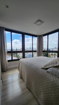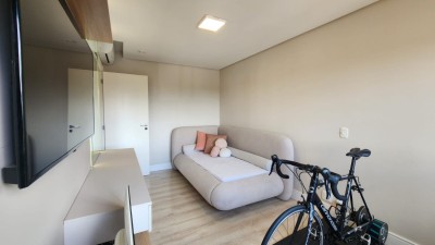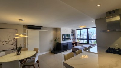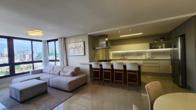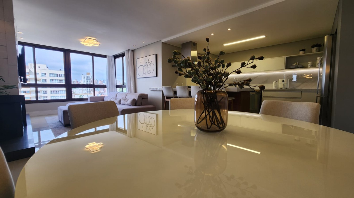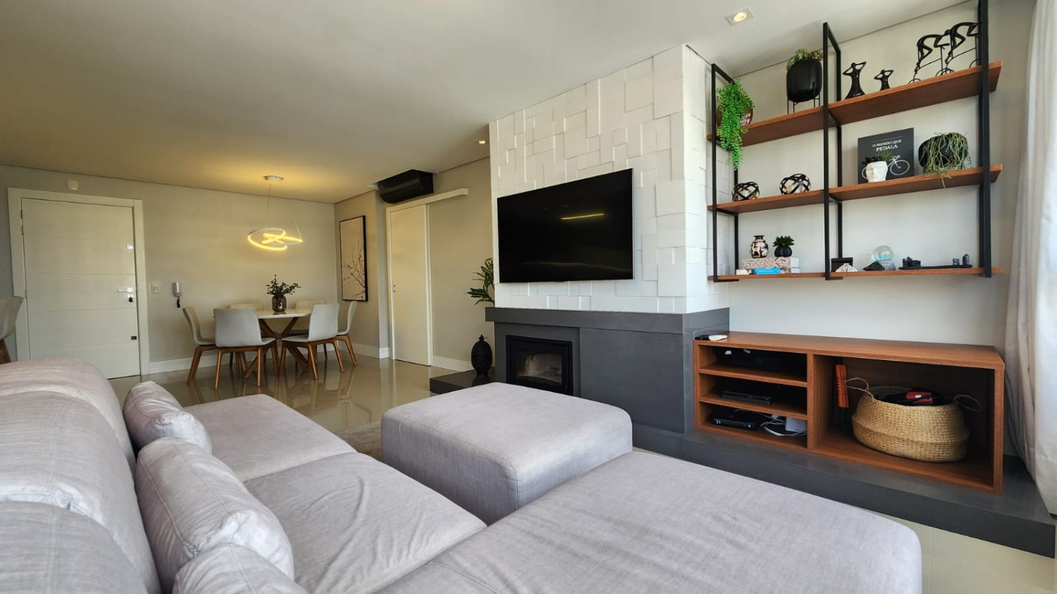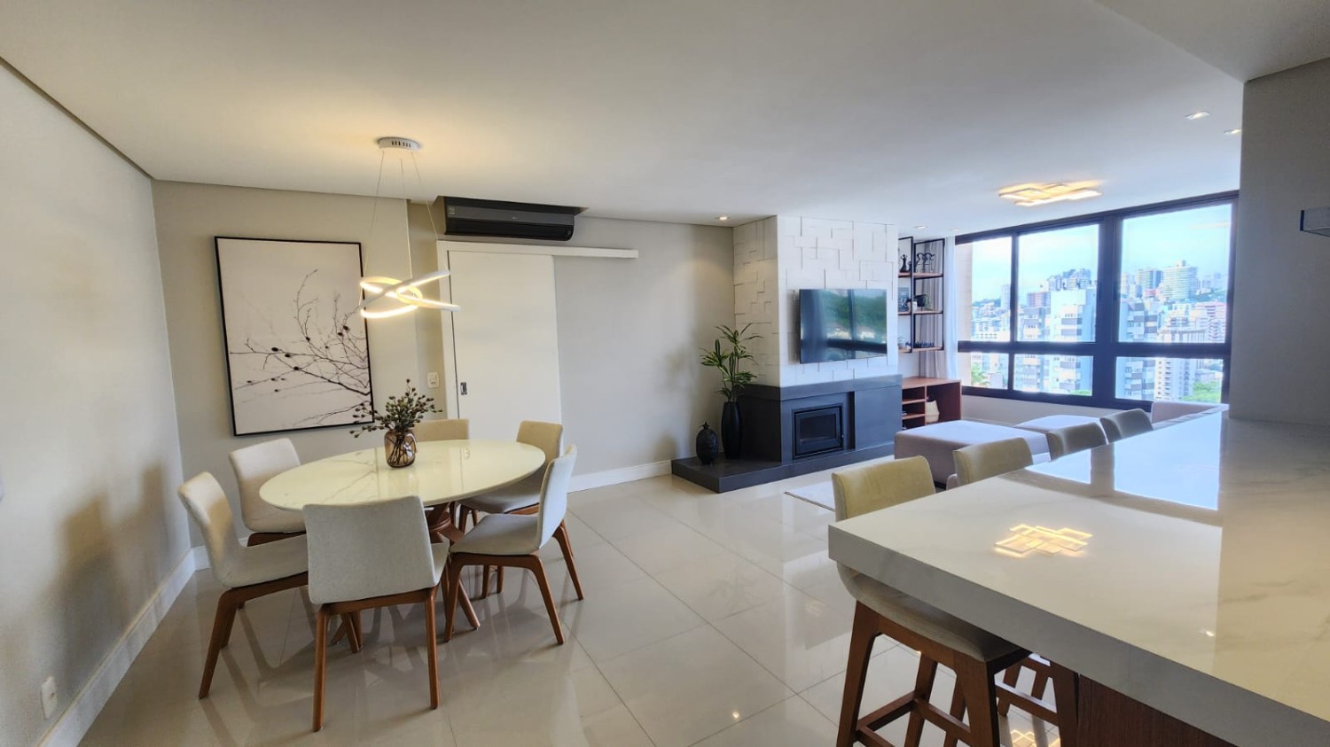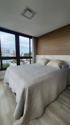 Descrição › Para você que busca um ótimo lugar para morar, apresentamos esse lindo apartamento, finamente mobiliado, composto de dois dormitórios, lareira na sala de estar, sistema de calefação nos dormitórios, piso porcelanato nas áreas frias e laminado nos dormitórios, ar condicionados instalados na sala e dormitórios, churrasqueira, área de serviço separada com aquecedor de água, composto de 94,60 m2 privativos, o prédio ainda contempla um belíssimo Salão de Festas. Localizado a cinco minutos a pé do centro da cidade, próximo a salão de beleza, academias, pet shop, possui duas vagas de garagens e depósito.