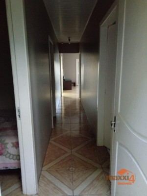 Descrição › Linda casa de alvenaria muito bem estruturada, com 02 andares, toda cercada e uma vista maravilhosa. Em cima conta com 03 dormitórios, sala de estar, sacada aberta, cozinha e banheiro, em baixo Garagem para dois carros, cozinha, quarto, banheiro e lavanderia em bairro familiar. Casa recém reformada. Não averbada.