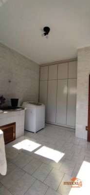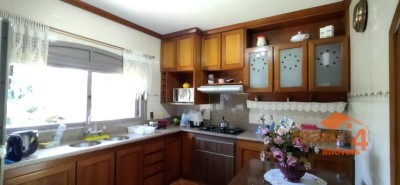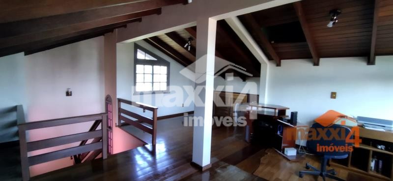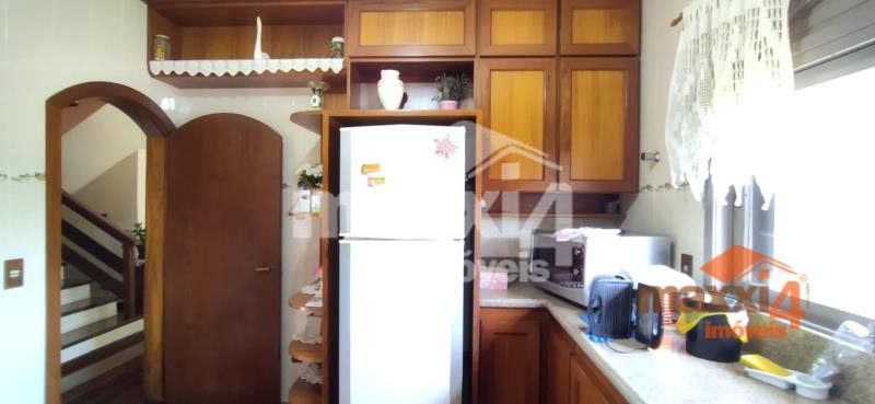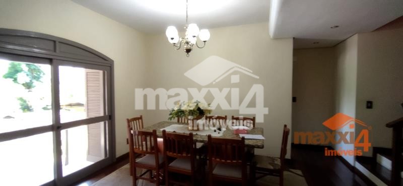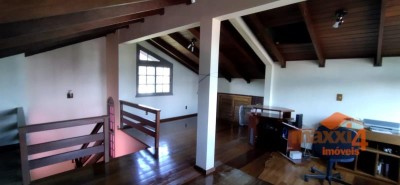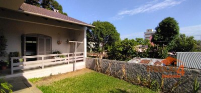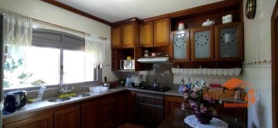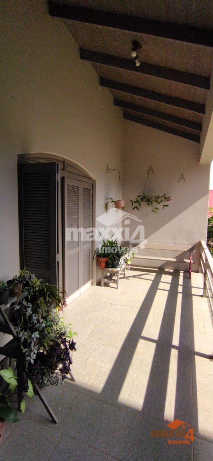 Descrição › Casa central de 326m² privativos Semi-Mobiliada de 2 pisos com 4 dormitórios sendo um suíte com closet. Térreo, hall, sala de estar com lareira, lavabo, sala de jantar, cozinha separada, lavanderia separada, garagem com churrasqueira para 2 carros e varanda. Piso superior escada, com 01 suíte com sacada mais 3 dormitórios e banheiro social. Pátio todo cercado com espaço para instalação de quiosque e piscina. Sótão grande que possibilita fazer uma sala intima à mais. Próximo a mercado, escolas, creche, academia, à 2 min do comercio central.