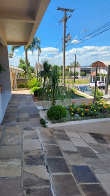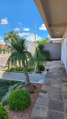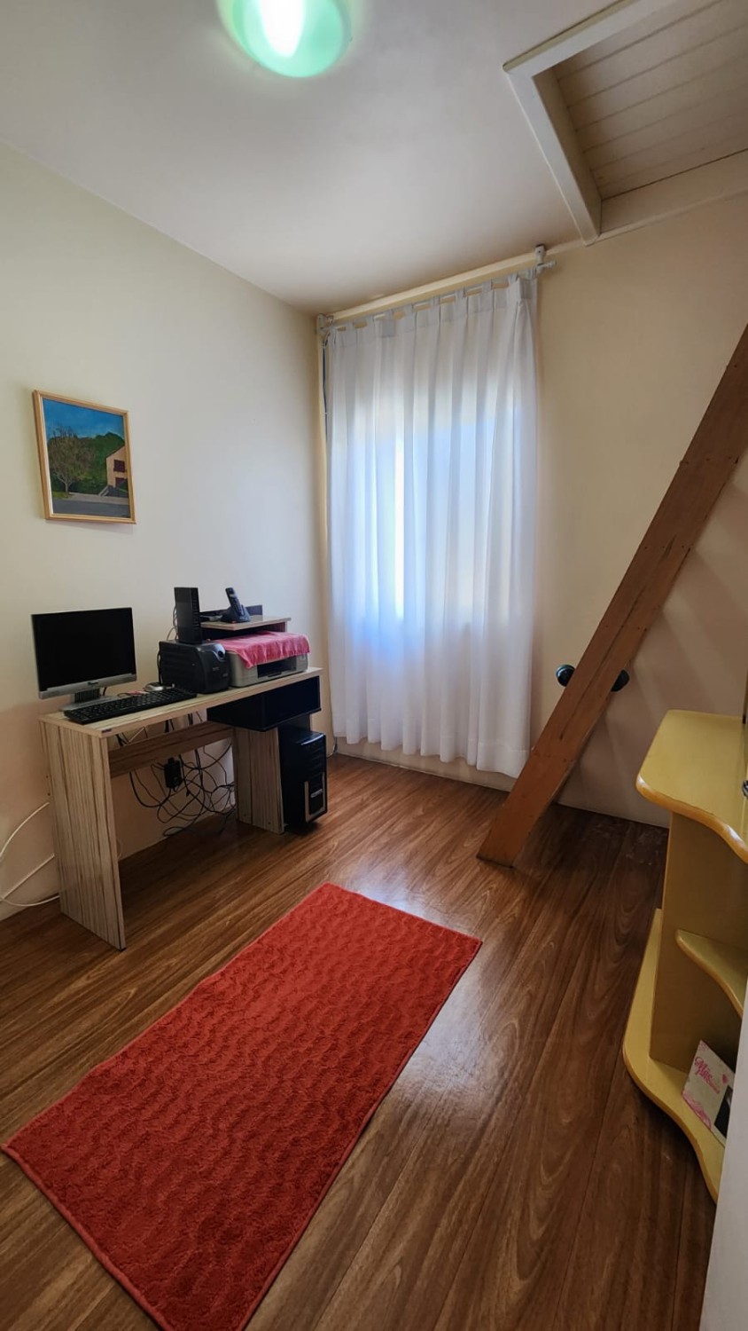 Descrição › Belíssima casa mobiliada com três pavimentos com 200m2, composta de três dormitórios sendo um suíte, sala para home office, sala de estar com lareira, banheiro social, sótão, área de serviço, garagem para dois carros com churrasqueira, toda cercada com porteiro eletrônico, próxima a Faculdade Cenecista, posto de Saúde, supermercados, academias, igrejas, pet shop, com placas solar instalada, e pátio.