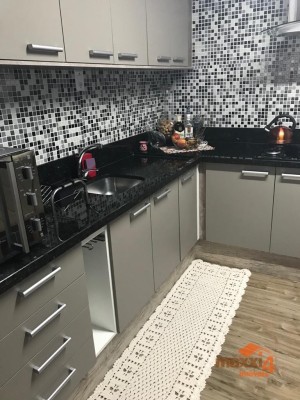 Descrição › Casa de alvenaria, composta de três pavimentos, parte superior com três dormitórios, sala, cozinha e banheiro, parte do meio composto de três dormitórios, sala, cozinha e banheiro, andar inferior usado como área de serviço, podendo ser feito outra moradia, casa toda murada e cercada com portão eletrônico, ficam os moveis sob medida.
