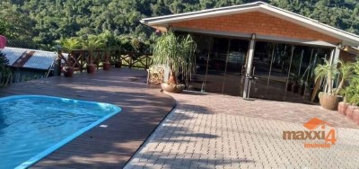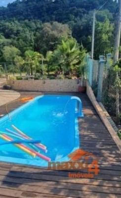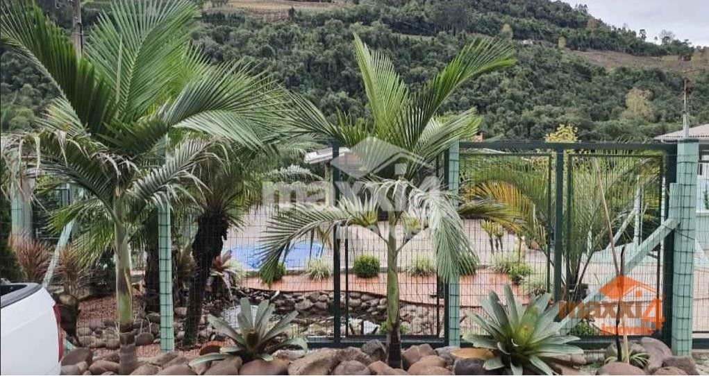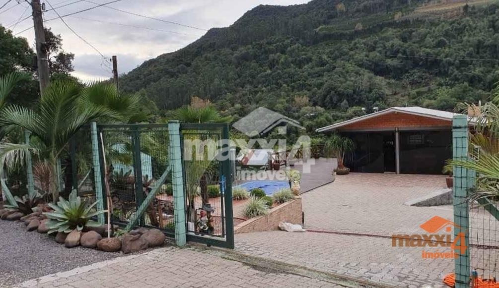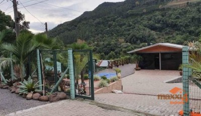 Descrição › Sítio com casa de material na Linha Alcântara com piscina aquecida (aquecimento solar), conta com 02 dormitórios sendo um suíte, banheiro social, área de serviço, cozinha com churrasqueira completa, sala de jogos, salão de festas, deck de madeira, pergolado, forno colonial, todo cercado, com alarme e sistema de câmeras de segurança, internet. Fica à 15 km da cidade de Bento Gonçalves com asfalto até a entrada. Contrato de Compra e Venda registrado em cartório.